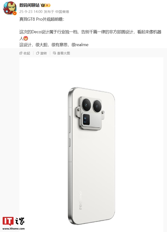 IT之家 9 月 29 日消息,realme 真我手机官方今日继续预热 GT8 Pro 新机,并透露该机拥有镜头模组新玩法,支持“可拆、可拼、可换”特性,宣称“告别千篇一律,跳脱非方即圆。享受拼装的乐趣,解锁百变的形态。”